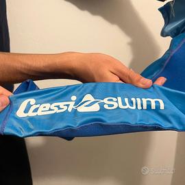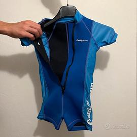 Vendo una muta shorty di colore blu-azzurro della linea "Cressi Swim" prodotta da Cressi. Rappresenta un'ottima scelta per un bambino di 4-5 anni (taglia M/98-105 cm di altezza) che non ha mai avuto esperienza con l'acqua o che sa già nuotare.