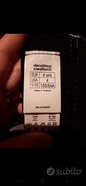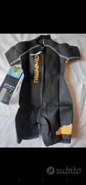 Nuovo con cartellino e quindi mai indossato. Muta da surf per bimbo. Marca Tribord taglia 4 anni (102-109 cm). Colore antracite giallo cuciture bianco e chiusura dietro con cerniera. Fodera 100% poliammide esterno 100% neoprene.