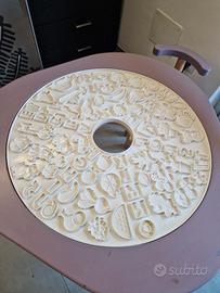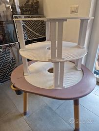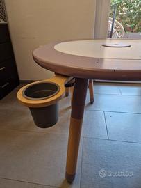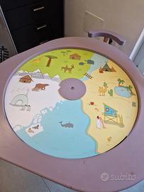 mutable con casa delle bambole completa di accessori e personaggi, 3 piani di costruzioni lego double face lego duplo e normali, disco doppio per formine pongo, disco con lavagna e bianco, disco base per puzzle con puzzle mondo, disco con luoghi del mondo e strade per veicoli. sedia mutable più altre 3 sedie in legno in regalo. Il tavolo è abbastanza vissuto ma perfettamente funzionante, gli accessori extra sono come nuovi, ci sono tutti i pezzi per alzare sia tavolo che sedie alla misura che occorre. Prodotto inscatolato nella sua confezione originale.