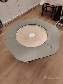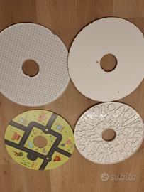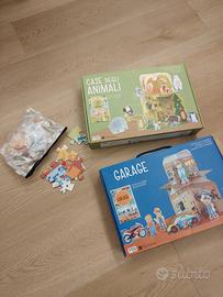 Vendesi tavolo Stokke con accessori (piedini per renderlo più alto-3 misure-, estensione, porta penne, sacca porta giochi e 4 ripiani giochi con doppia faccia) e giochi (1 puzzle rotondo-segnalo 1 pezzo mancante-, 2 scenari con 7 "colonne", paesaggio animali-segnalo zebra mancante,non garantiti tutti gli animali-, paesaggio garage). Il tavolino e alcuni ripiani presentano dei segni di usura.Solo ritiro a mano.