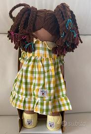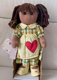Bambola Mulatta Marylin, marca My Doll, nuova con etichetta e confezione originale, prodotto artigianale, lavorato a mano, materiale in tessuto, capelli in lana , altezza cm 42, abito removibile, capelli con treccine. Abito a quadri, grembiule colorato con applicato un cuore rosso, Bambola fuori produzione, quasi introvabile, da collezione, molto carina ed ottima qualità