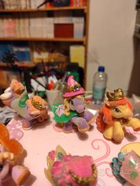 10 statuine my little pony in velluto, un po' scoloriti come in foto. più due altri personaggi in velluto