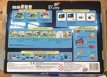 gioco di calcio con pupazzetti da usare con le dita, scarpini, calzini, porte, birilli, palloni, cartellini , bandierini per gli angoli e facce di carta da inserire nei pupazzetti