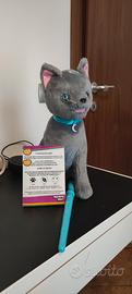 Gatto parlante interattivo, con movimenti e suoni. Gatto compagno di giochi che, quando toccato con la bacchetta magica e pronunciato l'incantesimo, diventa indovino in grado di fare domande e indovinare cosa stai pensando.