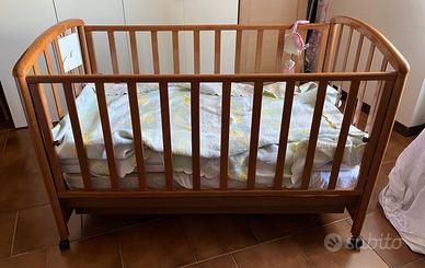 Una next to me bianca con laterale removibile completa di cuscino, lenzuolini, piumino e paracolpi.