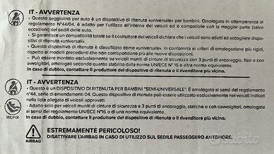 - Gr. 2/3 (3-12 anni circa), da 15 a 36 kg.