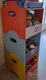 mobiletto contenitore per bambini, componibile, composto di tre scatole utilizzabili anche come sgabelli, molto capienti. misure in foto