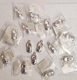 n. 35 scarpine ciondolo strass azzurri cm. 2,5x1 circa. Adatte come bomboniere nascita e chiudipacco.