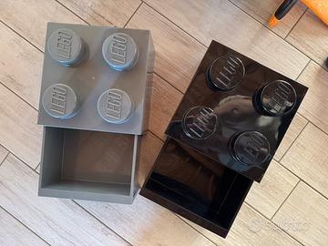 Set contenitori lego due grandi + due piccoli a cassetto colori: grigio, bianco e nero