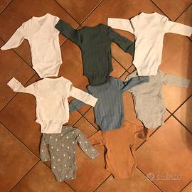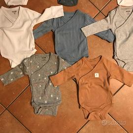 n° 8 bodini neonato marca KIABI 52-55 cm - 4Kg. Maniche lunghe in cotone. Alcuni usati pochissimo alcuni mai usati. Condizioni perfette.