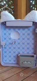bambola na na na con zainetto peloso a forma di gatto, viola.
