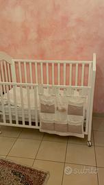 Vendo completi arredo per cameretta neonato NANAN linea TATO : lettino con cassetto,cassettiera ,pannello porta oggetti,n.2 ceste porta giochi,carillon da lettino ,riduttore,paracolpi e completi letto .