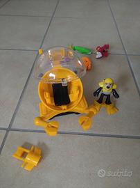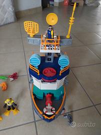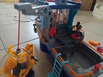 Nave giocattolo completa di personaggi, attrezzi, pesci e sottomarino. Rilascia l'ancora, manovra l'argano, lancia il salvagente, cattura mostri marini, immergiti negli abissi. Divertimento assicurato