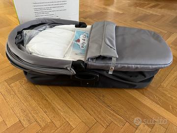 Omologata da 0 a 6 mesi/fino a un peso massimo di 9 kg. Adattatori per aggancio sul passeggino inclusi.