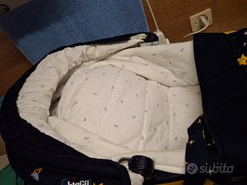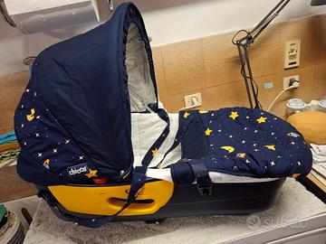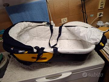 Vendo navicella Chicco per neonato, in ottime condizioni. Ideale per i primi mesi del bebè. - Colore blu e giallo, con fantasie a tema spaziale. - Tessuto morbido e confortevole. - Cappottina parasole integrata. - Include materassino.