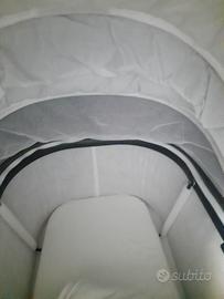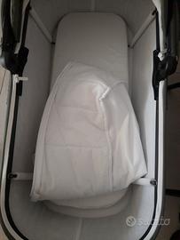 Culla navicella Foppapedretti tic tok colore verde oliva con materassino antisoffocamento e copri culla per la parte bassa. In ottime condizioni, nessun difetto. DETTAGLI: Materassino sfoderabile Rivestimento interno sfoderabile Misure navicella aperta: 41,5 x 83 x 65 h cm Misure interne navicella: 35 x 75 x28 h cm Misure navicella chiusa: 41,5 x 83 x 18h cm Peso navicella: 4,2 kg. Adatta dalla nascita fino a 9 Kg Scocca in morbido tessuto con protezione solareUPF50+ e cerniereresistenti all’acqua Tasto Memory per un facile sgancio con una mano sola Finestrella diaereazione posta sulla cappottina Pieghevole per riduzione ingombro