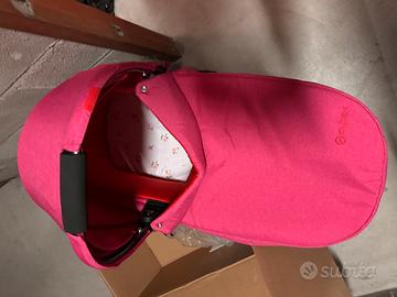 Compatibile con i passeggini Cybex (contattami per sapere se è adatta al tuo modello). Cappottina ampia, struttura robusta ma leggera, materassino interno comodo. Pronta all’uso, già igienizzata.