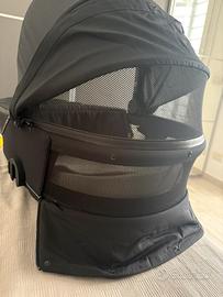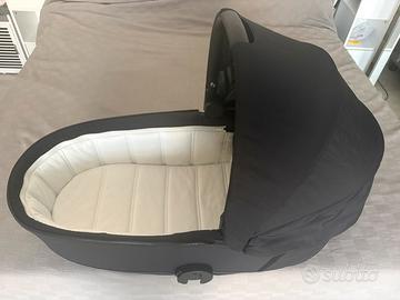 Navicella culla Cybex Mios nera, molto elegante grazie alle cuciture sulle coperture.