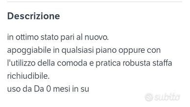 in ottimo stato pari al nuovo. utilizzo in qualsiasi piano o con la staffa richiudibile