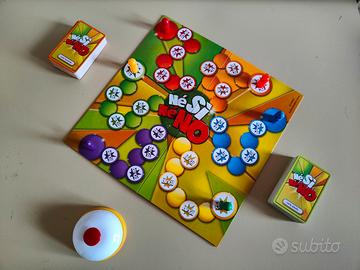Nuovo. Contenuto: 1 tabellone, 6 segnalini, 1 campanello, 55 carte per adulti, 55 carte per bambini e le istruzioni del gioco.