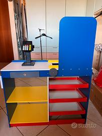 Negozio liddl giocattolo in legno ( ha hn difetto nella parre nera della cassa si era rotto l’abbiamo incollato e sisremato)
