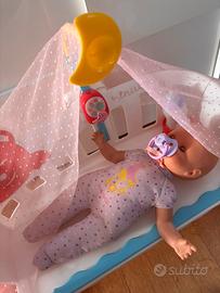 Nenuco - dormi con me con baby monitor. Bambola con corpo morbido h. 35 cm, lettino, biberon, ciuccio, tendina, copertina, baby monitor. Sono comprese anche le 2 barre che servono da prolunga per agganciare la culla al letto.