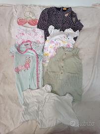 Due buste contenente abbigliamento bimba, misto cose estive e invernali. Body, tutine, pantaloni, maglie, qualche bavaglino, collant, calzini, un pò di tutto da 0 a 18 mesi. Tutto in buono stato, alcuni indumenti potrebbero avere degli aloni, il tutto non ha più di due anni.
