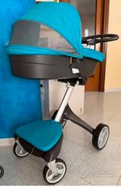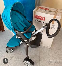 Duo carrozzino-passeggino Stokke Xplory. Alta gamma ad una frazione del prezzo di listino causa trasloco. Affare, nonostante non sia l'ultimo modello è tenuto benissimo. Al massimo qualche graffietto dovuto all'utilizzo.. Igiene garantita. Compreso nel prezzo ci sono 2 sacche applicabili e interscambiabili dello stesso colore e un ombrellino parasole. Prezzo 70 euro. Formula: vieni, lo vedi e te lo porti via oppure trasporto con costo di 30 euro a carico del destinatario