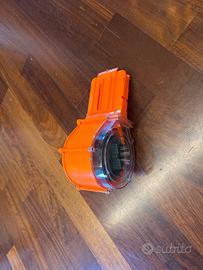 L’oggetto è in ottime condizioni, è elettrico e per funzionare ha bisogno di quattro batterie. Insieme al fuccile c’è anche il suo caricatore da 25 colpi.