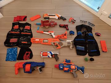Vendo nerf fucili mitra pistole di vario genere con vestiario accessori e colpi, nerf fucile arancione grigio €25 nerf mitra blue arancione €25 cadauno, nerf azzurro bordeaux € 15, nerf pistola grande bianca arancione €25, nerf pistola media bianca arancione € 20, nerf pistola media €15,nerf pistole piccole € 10 cadauna,vestiario e accessori vari tutto €50, tutto in blocco a 150€