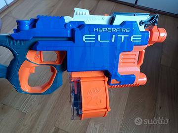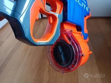 Fucile NERF, spara proiettili di gommapiuma, ha lo sparo automatico, e monta un caricatore a tamburo da 25 colpi, inclusi. Perfettamente funzionante.