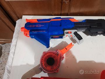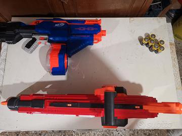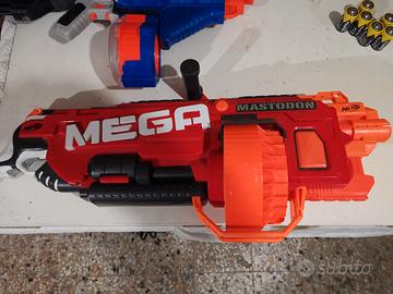 Nerf Ifinus tamburo da 30 dardi automatico (4 batterie D torcia da 1,5 V) e Nerf Mega Mastod tamburo 24 dardi automatico (6 batterie D torcia da 1,5 V). Condizioni ottime batterie e dardi non inclusi