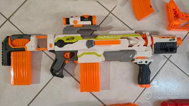 Vendo per inutilizzo n° 7 armi NERF praticamente nuove di cui uno elettrico funzionante. Compresi n° 3 caricatori e circa 250 proiettili.