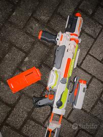 Salve come da titolo vendo nerf modulus automatico (servono pile per sparare) super accessoriato come da foto.. tenuto molto bene e funzionante.. in aggiunta c’è la videocamera con cui fare i video delle battaglie in qualità 720p