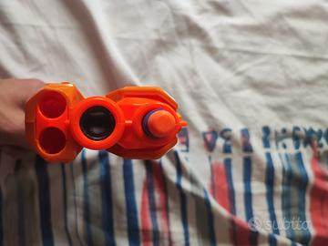 Pistola Nerf originale modello Firestrike Elite, compatta e molto potente. È dotata di un pratico puntatore a luce integrato per prendere la mira con precisione e di un doppio vano frontale per tenere i dardi di scorta a portata di mano. Un dardo incluso.