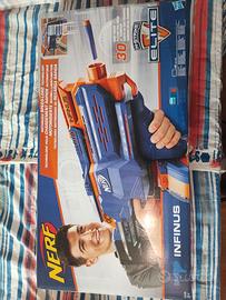 Vendo blaster Nerf N-Strike Elite Infinus completamente motorizzato. È dotato della tecnologia "Speed-Load" che permette di caricare i dardi senza rimuovere il tamburo. Incluso nella confezione il caricatore a tamburo e i colpi presenti in foto. Completo di scatola originale. Batterie non incluse.