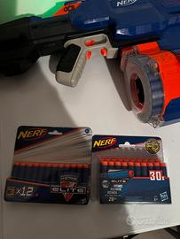 Funziona perfettamente, completo di tamburo da 35 dardi e in dotazione 68 dardi Elite originali (26 già inseriti + 42 ancora confezionati).