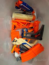 NERF pistole, fucili, caricatori, gilet porta colpi Saranno indicativamente 20/25 pz Non divido, non spedisco, no ulteriori foto. Solo ritiro a mano previo accordo.