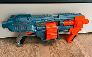 BLASTER NERF ULTRA ONE CON TAMBURO A ELEVATA CAPACITÀ: il blaster motorizzato Nerf Ultra One include un tamburo a elevata capacità che contiene fino a 25 dardi Nerf Ultra. Funziona soltanto con i dardi Nerf Ultra. Nerf Fortnite TS ispirato al videogioco Fortnite. Tipo: Blaster a pompa (pump-action) che utilizza dardi di grandi dimensioni. Capacità: Dispone di un caricatore interno da 4 dardi. Funzionalità: Include la modalità "slam-fire" per un fuoco rapido tenendo premuto il grilletto mentre si aziona la pompa. Caratteristiche: Include uno scomparto nel calcio per conservare 4 dardi aggiuntivi. Nerf N-Strike Elite Disruptor. Capacità: Tamburo rotante da 6 dardi Elite. Modalità di sparo: Singolo o "Slam Fire" (raffica rapida tenendo premuto il grilletto). Gittata: Fino a 27 metri. Caratteristiche: Meccanismo di caricamento a leva superiore. Hasbro Nerf Elite 2.0 Shockwave RD-15. Tamburo Rotante: Include un tamburo rotante capace di contenere 15 dardi. Modalità di Sparo: Dispone di due modalità: colpo singolo o raffica continua a pompa. Capacità e Gittata: Viene fornito con 30 dardi originali e può sparare fino a una distanza di 27 metri. Hasbro Nerf Fortnite Pump SG. Si ispira all'omonimo fucile presente nel videogioco Fortnite. Utilizza un meccanismo a pompa per caricare e lanciare dardi Nerf Mega. Nerf Fortnite SMG-Zesty. È ispirato al videogioco Fortnite e riproduce l'aspetto della "Zesty Wrap". Include un caricatore rimovibile da 10 dardi. È dotato di una canna e un calcio rimovibili per personalizzarlo. Funziona con un meccanismo a molla e richiede di tirare indietro la slitta per caricare ogni colpo.
