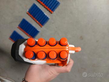 Blaster Nerf in ottime condizioni, facile da usare e perfetto per giochi a distanza ravvicinata grazie al suo sistema di doppio colpo. Design compatto, leggero e maneggevole.