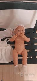 Sembra una bimba vera. Scamiciata in velluto a coste con mutandina integrata, camicina. Cm 40