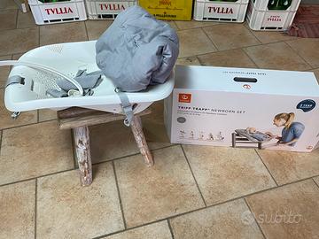 Vendo Newborn set per tripp trapp della stokke comprato nuovo luglio 2021 ottime le condizioni, fornito di guscio e copriguscio impermeabile.