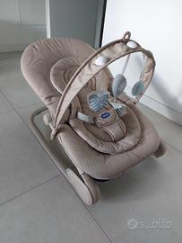 - la sdraietta Hooplà della Chicco con seduta reclinabile con diverse posizioni, effetto dondolo, barra gioco ed infine cuscino riduttore rimovibile e lavabile. Sdraietta e seduta pratica e compatta.
