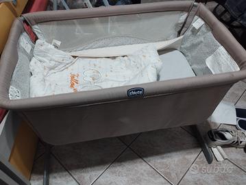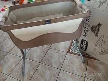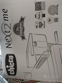 Next 2me chicco, possibile mettere accanto al lettone. Compreso di materasso. Ottimo per bimbi appena nati fino a 6 mesi. Altezza regolabile in 5 altezze. Piedini pieghevoli. Inclinabile per aiutare la digestione o congestione nasale