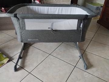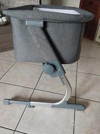 vendo culla fianco letto praticamente nuova con altezza testa e piedi regolabile, con apertura laterale con cerniera e barra di sicurezza, completa di materassino e cuscino.