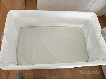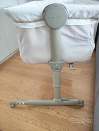 Nanna oh è una culla fianco letto dotata, grazie ai piedini basculanti, di una funzione dondolo per cullare il proprio bambino. è la culla che consente di avere il proprio bambino sempre accanto a sé per allattarlo. Adatta alla maggior parte di letti è facile e sicuro il sistema di fissaggio grazie a 2 morbide cinghie tessili in dotazione che vengono agganciate saldamente al letto dei genitori.