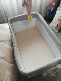 Vendo next to me in buonissime condizioni (vedere foto allegate). Completamente sfoderabile e lavabile, materassino antirigurgito, dotata anche di funzione dondolo. Ha cinturine che consentono di poterla attaccare al letto (anche contenitore). No perditempo.