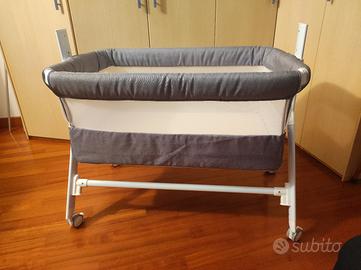 Next to me ottima per coosleeping in casa e in viaggio con custodia per trasporto. Tessuto sfoderabile e lavabile. Posizioni ANTIRIGURGITO ottime per reflusso. 4 ruote antigraffio che permettono di spostarla agevolmente per casa per avere sempre il bambino/a vicino. Materasso traspirante antisoffoco