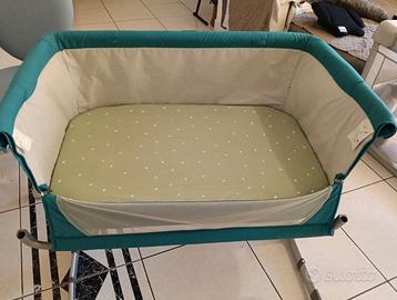 Culla next to me usata ma davvero poco e in perfette condizioni nessun difetto, completa di tutto compreso sostegno, materassino e set lenzuola più un copri materassino impermeabile
