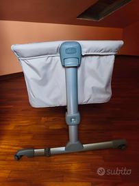 Vendo Next to me essential in ottimo stato. Omologato dalla nascita fino ai 6 mesi e a un massimo di 9 kg. Dotato di 2 finestre laterali in rete e di un materasso traspirante. Grazie ai 6 livelli di altezza e ai piedini ribaltabili e adatto a diverse tipologie di letto. Equipaggiato con 2 ruote con freno per spostarlo facilmente. Dimensioni: 98.5 x 70.5 x 65/80 cm